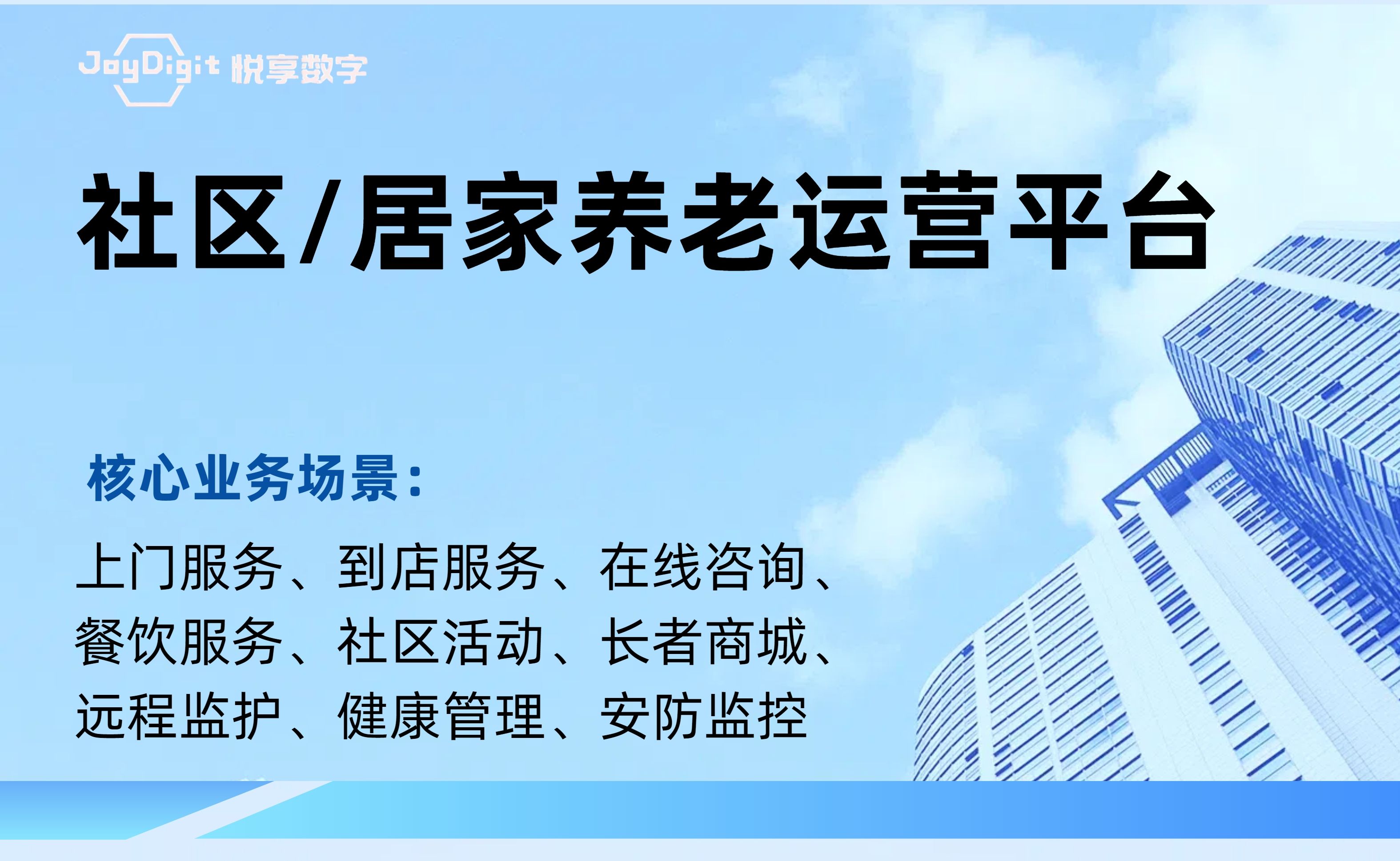 北京悅享數(shù)字科技有限公司(JoyDigit?,簡(jiǎn)稱悅享數(shù)字?)作為養(yǎng)老行業(yè)數(shù)字化轉(zhuǎn)型的引領(lǐng)者,以“數(shù)字驅(qū)動(dòng)健康?,智慧賦能養(yǎng)老?”為愿景,以iSpeed作為養(yǎng)老行業(yè)數(shù)字化轉(zhuǎn)型的標(biāo)準(zhǔn),通過融合大數(shù)據(jù)、人工智能、物聯(lián)網(wǎng)、區(qū)塊鏈和移動(dòng)互聯(lián)等創(chuàng)新技術(shù),打造了領(lǐng)先的數(shù)字化養(yǎng)老解決方案-悅享養(yǎng)老數(shù)字化平臺(tái)(JoyDigit NexSight Platform),端到端覆蓋了數(shù)字化渠道與銷售、業(yè)務(wù)流程標(biāo)準(zhǔn)化與智...
